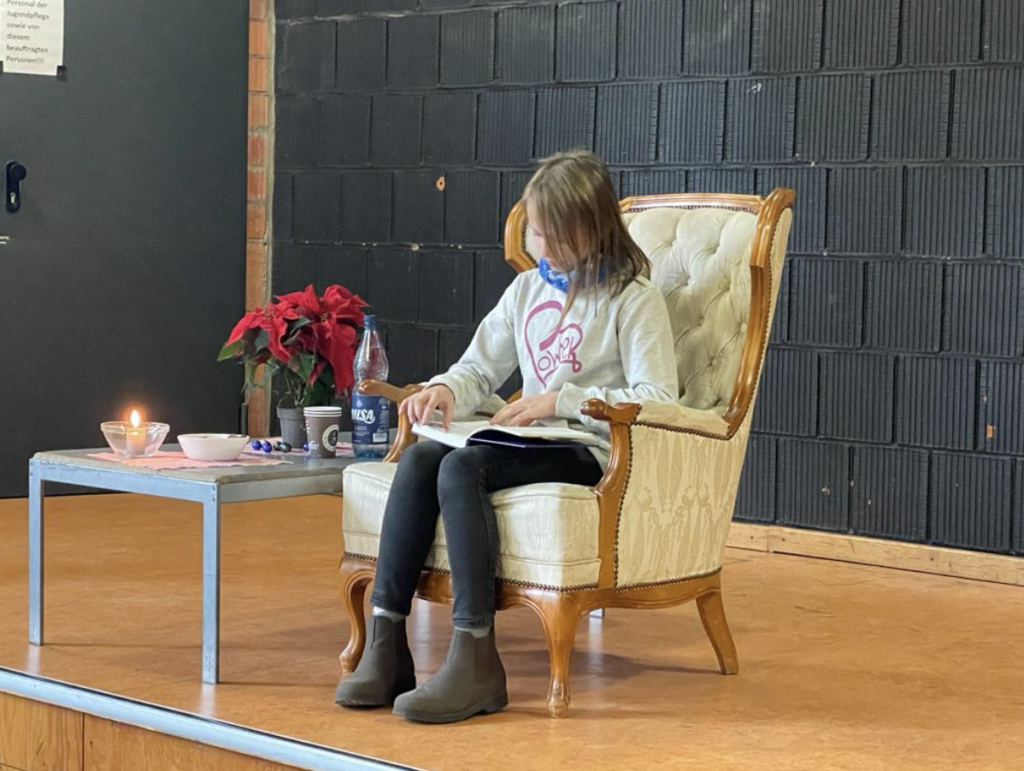 In unserem Jugendpavillion bekamen die Leser:innen eine Bühne mit Vorlesethron, von dem aus sie den ZuschauerInnen aus Jahrgang 5 schon einmal zeigen konnten, was sie im kommenden Jahr erwartet.