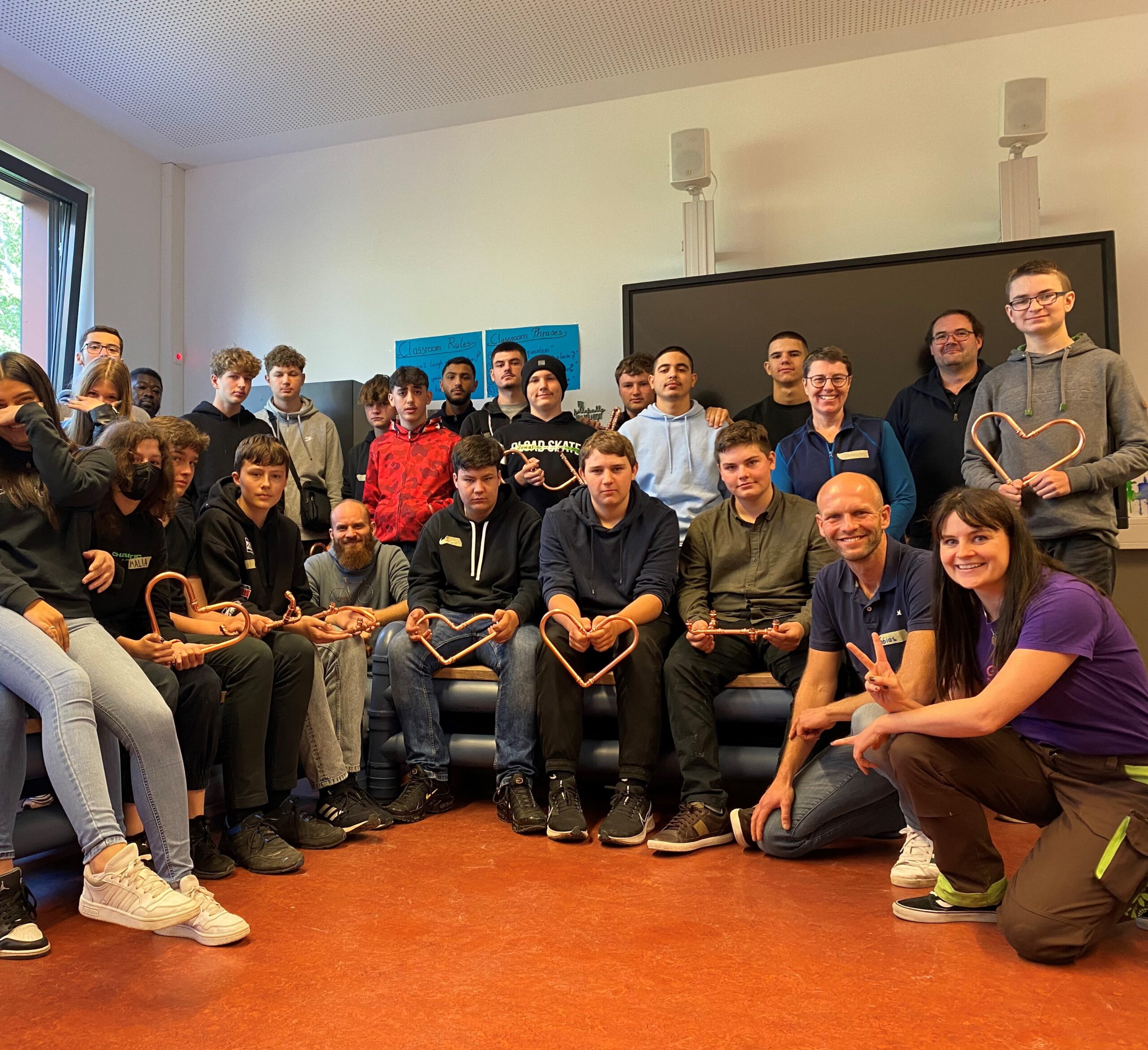 Am 11.10.22 fand mit der Peter-Jensen-Stiftung und dem Fachhandwerksbetrieb für Heizung-, Sanitär und Klimatechnik Dechow Dienstleistungsgesellschaft mbh aus Hannover eine Handwerker Live-Stunde in der Grund- und Oberschule statt. An diesem Tag konnten insgesamt 24 Schüler/innen den Beruf durch Praxisanwendungen, an verschiedenen Stationen, den Arbeitsalltag besser kennenlernen. Ziel des Schulprojektes der Peter-Jensen-Stiftung war es den „Universitätswahn“ zu bekämpfen und die Schüler/innen von einer dualen Berufsausbildung zu überzeugen. In den Handwerksberufen ist der Nachwuchsmangel am größten, deshalb setzt die Stiftung hier auch den Schwerpunkt Ihrer Arbeit für praxisorientierte Anwendungen. An dem Vormittag stellten die Stiftung und die Firma Dechow den SHK-Anlagenmechaniker als attraktiven Beruf vor. Die Schüler/innen lernten den Joballtag durch Praxisanwendungen selbst kennen, konkret: Schneiden, stecken und pressen („Polokal-Bank für den Schulhof, Handyhalter oder Herz aus Kupferrohr“). Zudem wurden simulierte Verstopfungen per Endoskopkamera geortet und beseitigt, sowie per AR-Brille eine moderne Heizungsanlage digital repariert. Der Vormittag war sehr unterhaltsam und informativ für alle Beteiligten! Im Anschluss an die Veranstaltung bekamen sogar einige Schüler/innen die Möglichkeit sich für ein Betriebspraktikum oder Ferienjob bei der Firma Dechow anzumelden. Es zeigt sich also mal wieder, Schüler/innen wollen und müssen Berufe möglichst praktisch kennenlernen.